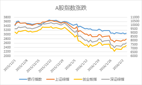 从分行业来看,银行板块属于明显低估值板块。年初以来的A股大幅调整,上证综指、深证综指以及创业板指数调整幅度接近25%。银行板块虽然也在下跌,但是15%的调整幅度低于上述三大指数,看下图。