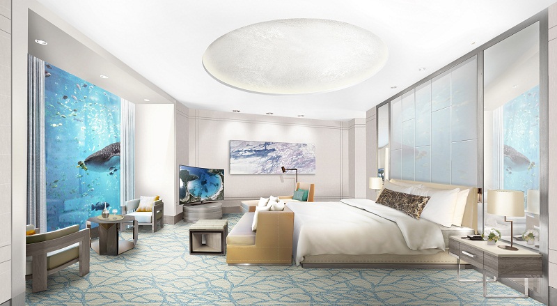 这可能会成为海南度假酒店的又一个高峰。据了解,该项目总占地806亩,总面积53万平方米,耗资约110亿元人民币。酒店共拥有1314间亚特兰蒂斯特色全海景酒店客房。水下豪华套房一直是亚特兰蒂斯的品牌特色之一,这间位于三亚的亚特兰蒂斯酒店将拥有超过迪拜棕榈岛酒店的五间豪华水下套房。
