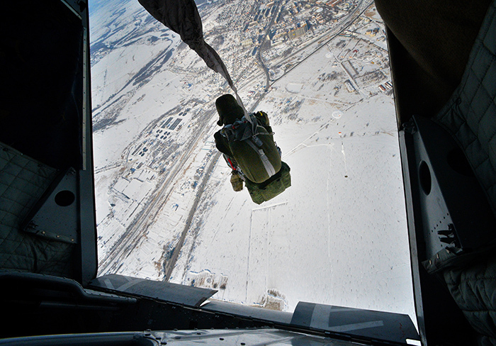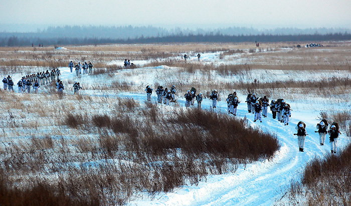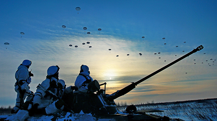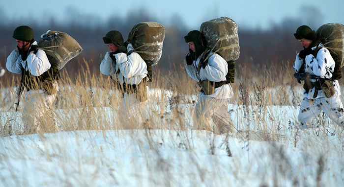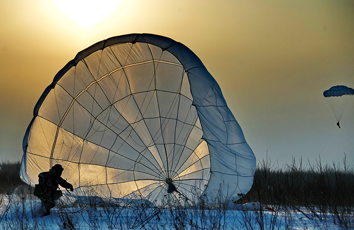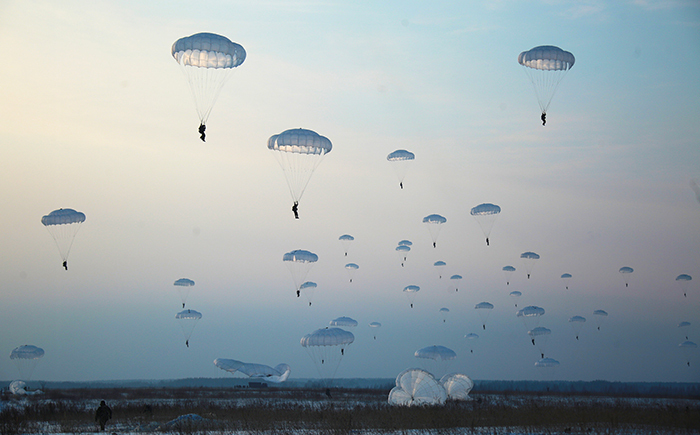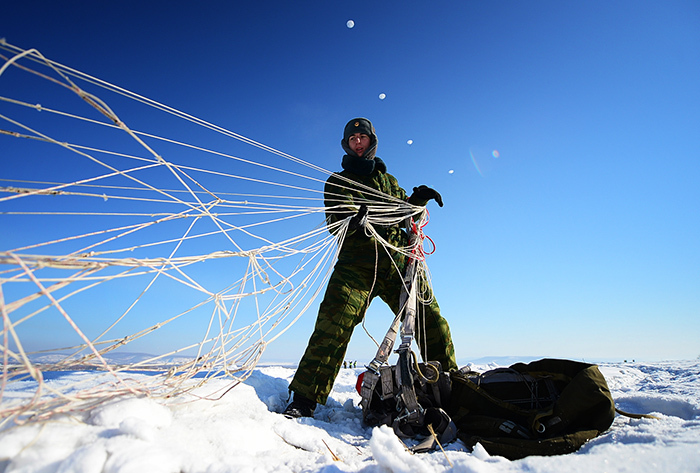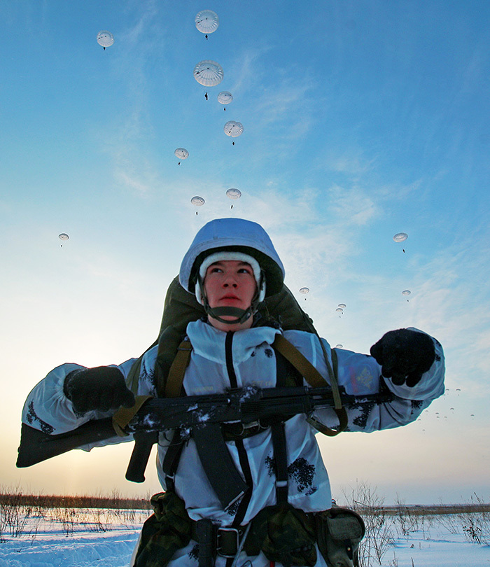 5. 2016年1月23日,俄罗斯地区。俄罗斯空降军第98近卫空降师军人在军事演习中。第98空降师是俄罗斯空降兵精锐部队之一,组建于1944年,至今已有61年的历史。