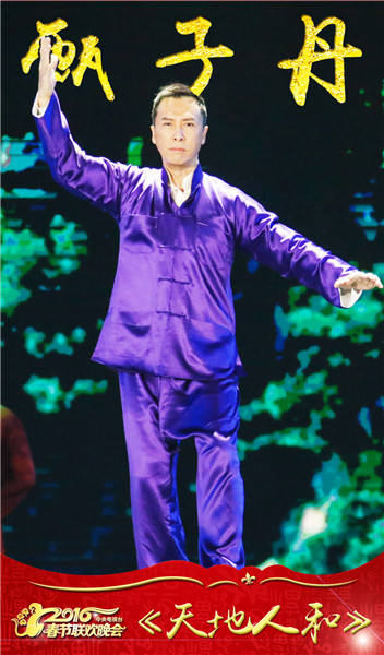 32. 创意武术节目《天地人和》,打星甄子丹与山东莱州中华武校的孩子们联手表演。