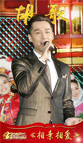 18. 2016年央视春晚,除北京一号演播大厅主会场外,节目组还选取了东西南北四个分会场,东至福建泉州,西通陕西西安,南联广东广州,北往内蒙古自治区呼伦贝尔。“宗主”胡歌在泉州会场演唱《相亲相爱》。