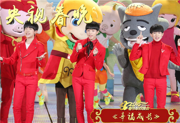 9. 2016央视春晚面向青少年的节目《幸福成长》,tfboys被央视称为“加油男孩组合”。