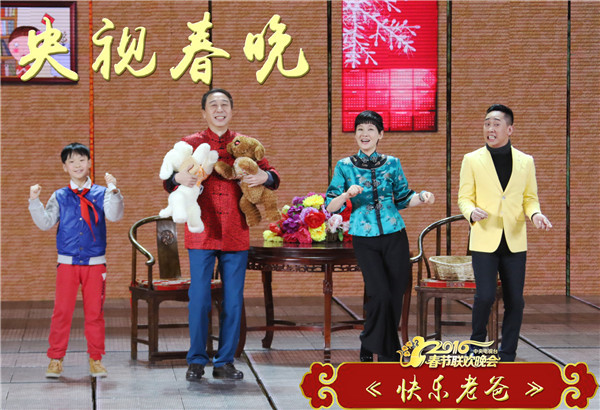 8. 2016央视春晚第一个小品《快乐老爸》,“老朋友”冯巩和新搭档徐帆、白凯南。