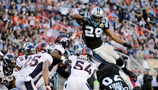 随后黑豹进攻,初登超级碗赛场的MVP四分卫纽顿还是有些紧张,表现低迷。防住野马的进攻后,黑豹的进攻组再次登场,他们从本方的15码线发起进攻。但是黑豹的进攻一直被对手阻击,第一节结束时,野马以10-0领跑比分,得到一个完美开局。