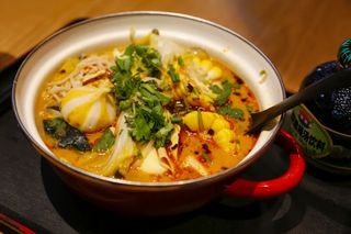 首先,麻辣烫被做了本土改造,融入骨汤来代替红汤,降低辣度和油腻,还加入了北方人独爱的灵魂麻酱,麻酱带来的热量非常适合寒冷的北方补充能量。