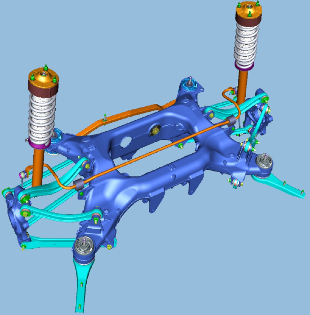 悬架是汽车的承载式车身与车轮之间的一切传力连接装置的总称,其作用是传递作用在车轮和车身之间的力和力矩,并且缓冲由不平路面传给车身的冲击力,并减少由此引起的震动,以保证汽车能平顺地行驶