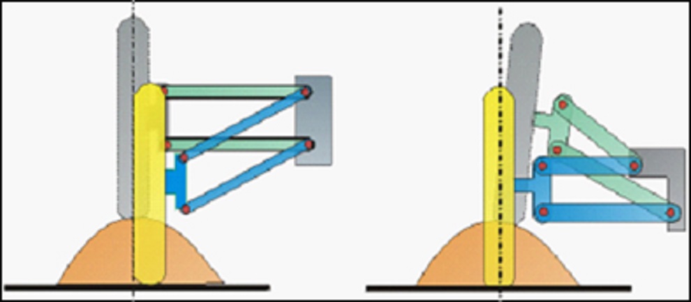 双球节结构将虚拟转向中心延伸至轮胎中心线。消除了转向时,轮胎的侧向滑移,使得前轮始终保持贴地性。与前悬的双球节结构相比,轮胎的转向中心线更垂直于地面,减小倾斜角度,增大了后轮在转向时与地面的接触面积。