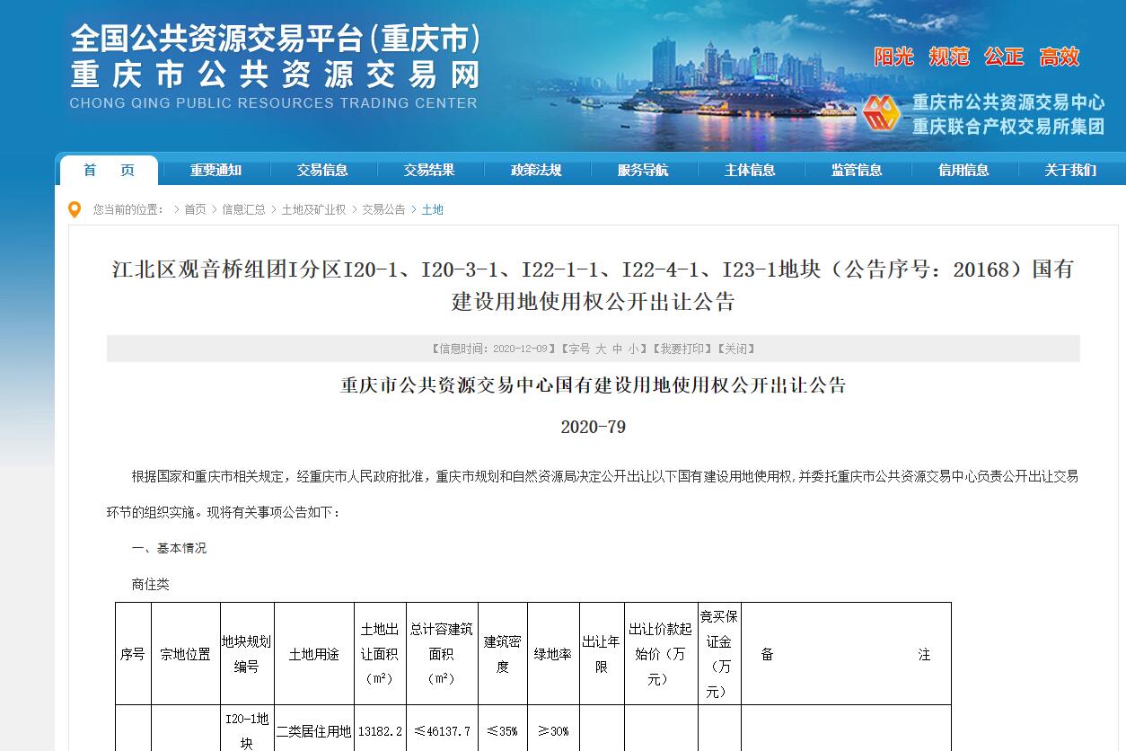 12月9日,重庆市公共资源交易网上挂出一则土拍信息引起了重庆房地产业一片沸腾。该地块位于观音桥商圈核心位置,起拍楼面价高达13018元/㎡,创下了重庆起拍楼面价新高。