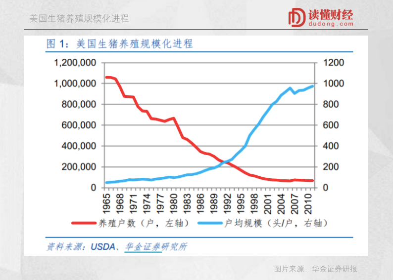 目前国内规模化程度不足,不好判断这一趋势对周期的影响,但我们可以借鉴海外的发展情况。比如美国、加拿大,生猪产业在1980-2010年均经历过快速规模化。