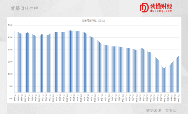 为了恢复生猪产能,政府在2019年8月取消了生猪禁养、限养规定。之后,能繁母猪存栏和生猪存栏量开始恢复。