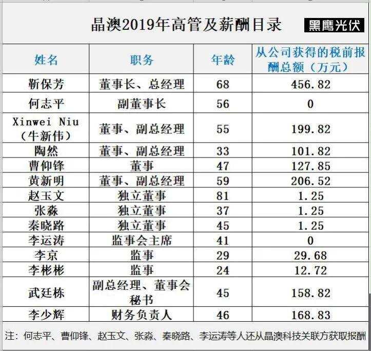 我们也从上市公司公开信息查询到目前晶澳科技核心高管的个人简历与信息。