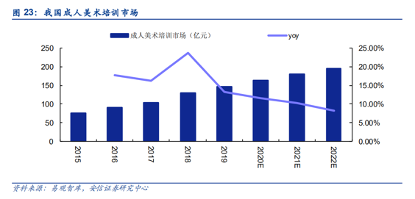 广证恒生研报数据显示,以2019 年为例,整体美术教育市场规模约 1260 亿元,其中美术通识教育约1130 亿元、美术艺考规模约 130 亿元。