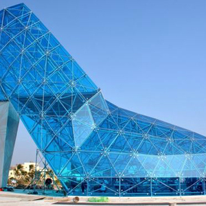 这个建筑由320多块有色玻璃面板制成,这个闪闪发光的“大蓝鞋”宽超过10米,总共耗资2300万新台币(68万美元)。
