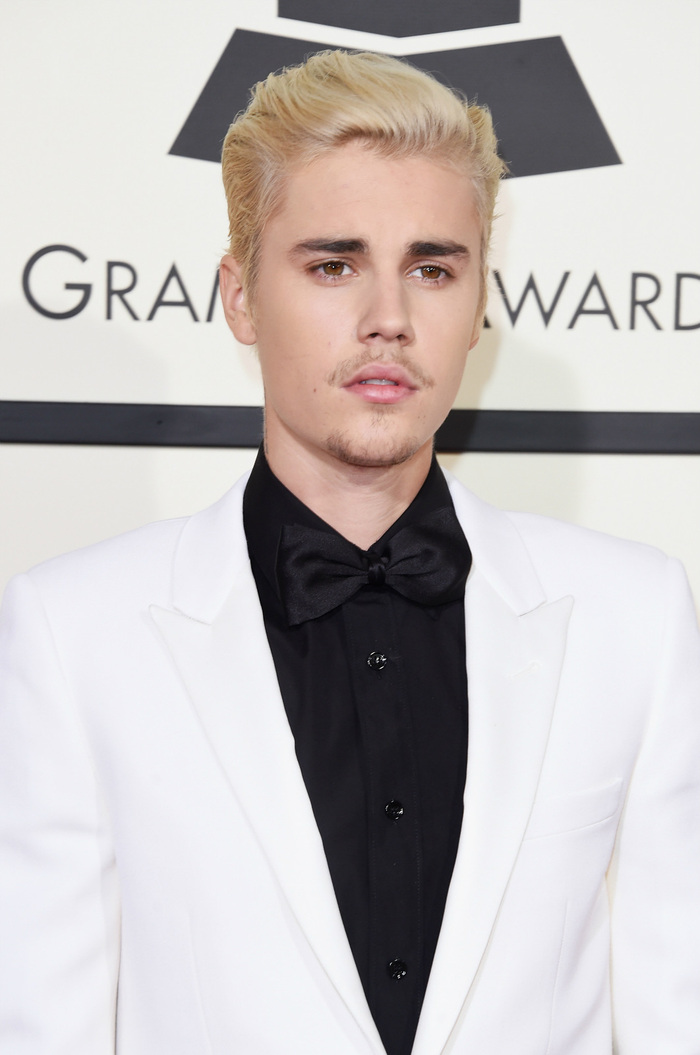1. 贾斯汀·比伯白色西装红毯照。