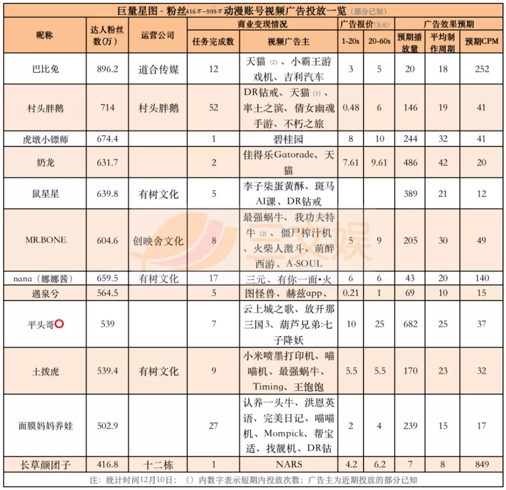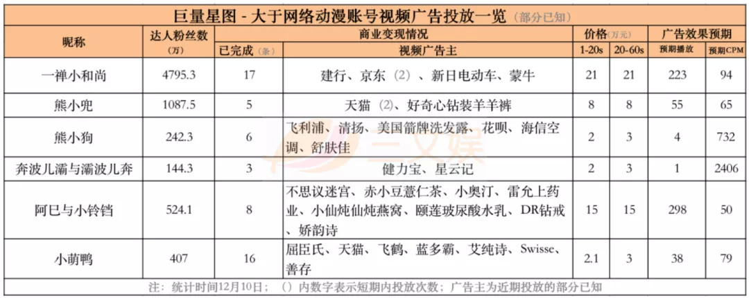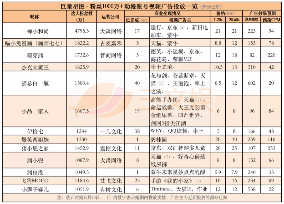 到今年12月,再看这些粉丝百万、千万的动画短视频账号时,行业关注的焦点已不再是粉丝量、影响力,或者商业化变现方式了。取而代之的,是商业变现效果。