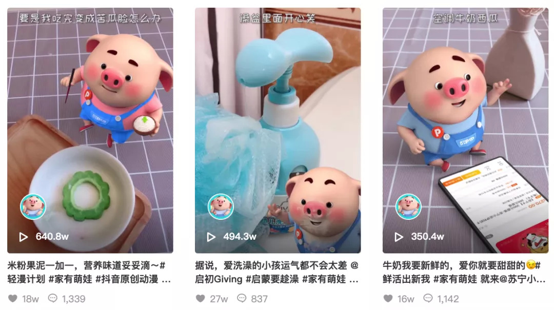 2020年猪年春节期间,震惊文化旗下IP"猪小屁"席卷了整个社交网络。目前“猪小屁之家”在抖音的粉丝数为1261万,近期视频中《看看熊孩子是如何花式催爸爸回家的》播放量3160万。