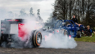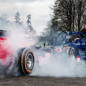 里卡多开红牛RB8战车,和8个壮如牛的橄榄球队员玩:“谁力气大”。
