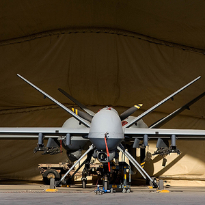 通用原子航空系统公司制造的MQ-9“死神”是在MQ-1“捕食者”的基础上研制的一款极具杀伤力的无人作战飞机,主要任务是为地面部队提供近距空中支援,还可以在山区和危险地区执行持久监视与侦察任务。