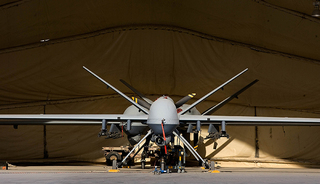 MQ-9“死神”无人机携带有多光谱瞄准系统和激光制导弹药的激光测距仪/指示器,机上装备6个武器挂架,可搭载包括“地狱火”导弹、GBU-38联合直接攻击弹药等近300千克炸弹。