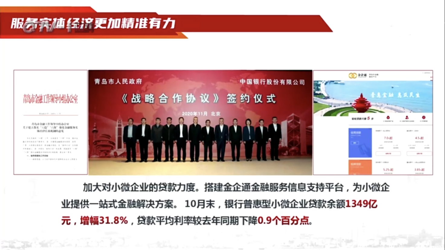 对上合示范区的支持力度增强。出台《青岛市金融支持上合示范区发展的指导意见》。国家外汇管理总局批复的十项外汇试点政策不断释放红利,营造了便利高效的外汇营商环境。今年以来,金融机构综合运用各类金融工具为上合示范区重点项目和企业提供融资支持超百亿元。33家金融机构与上合示范区金融服务中心签约,青岛农商行、中国银行、紫金财险设立上合示范区分支机构。