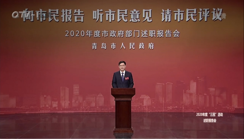 12月19日上午,2020年青岛市政府部门向市民报告、听市民意见、请市民评议活动(简称“三民”活动)公开云述职报告会正式启动,市政府部门“一把手”首次向市民云述职,接受市民的评议。