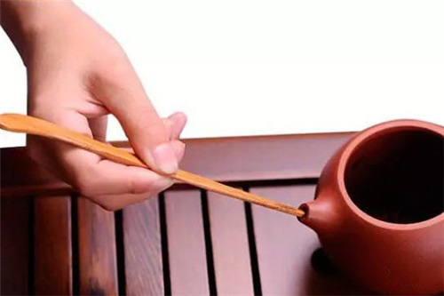 不知道有多少小白级茶友这样子干过。其实,茶筒里插着的那根尖尖的东西,叫“茶针”,是“茶道六君子”之一,用于疏通壶嘴,以保持水流畅通,或者拨匀茶壶里的茶叶。