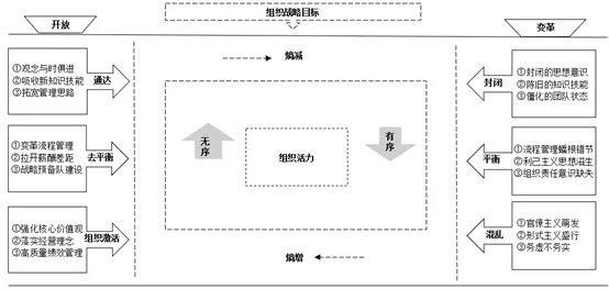 日益复杂与不确定的外部环境变化,使当前许多大中型企业组织惰性明显,组织活力下降,人均效率降低等问题突出,影响组织的持续创新与发展。多数组织存在普遍管理熵增现象,并且会随企业逐渐发展壮大愈发明显;组织可通过变革与开放双重路径激发组织活力,反向做功克服熵增实现熵减,耗散组织冗余负能量,从而延长组织寿命,为组织长期稳定发展提供内部管理路径和实践参考。