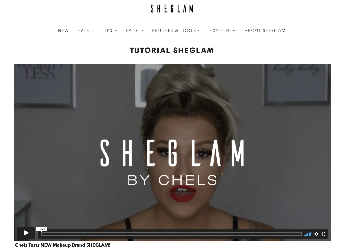 与此同时,SHEGLAM还在网站上开设“搜索”一栏,可以看到一些网红博主展示的使用SHEGLAM打造出的妆容。此外,SHEGLAM还精选了一些网红博主做的美妆教程,手把手教你如何使用该品牌的产品。