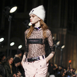 一般情况下,暴露都遵循着只透半身的铁则,即无袖上衣一般就搭配长裙长裤。但是在王大仁的这一个秋冬系列,我们可以看见他用不同面料和结构,把透视设计出了叛逆清新的感觉。
