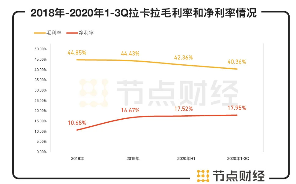 反映在净利润率上,拉卡拉净利润率在2018年达到一个相对低点10.68%后,于2019年-2020年上半年,一直处在反弹区间,2020年上半年为17.52%,截至2020年Q3进一步反弹至17.96%。