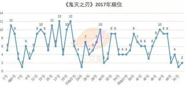 2017年的顺位相较于2016年,整体进步了许多,排名第5(前四位分别是《海贼王》、《我的英雄学院》、《约定的梦幻岛》、《黑色四叶草》)大部分期数都保持在了前十,还有3次登顶第一。