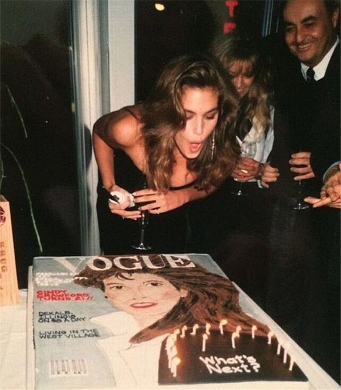 蛋糕上写着:“接下来会发生些什么呢?”克劳馥在这张老照片下面写道:“那时我在过21岁生日。蛋糕上写着:‘接下来会发生什么?’——而我现在都知道了!”后一日,她的丈夫用私人飞机带着她前往加勒比海岛度假。