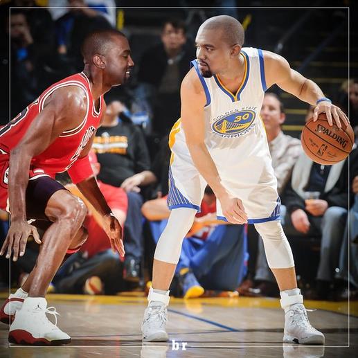有人还做了张图,球场上坎耶脸乔丹正在防守坎耶脸库里的进攻。这真是到目前为止我最喜欢的一个恶搞了。我得放大这图,贴在我家墙上或者哪个地方。