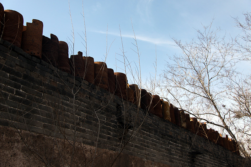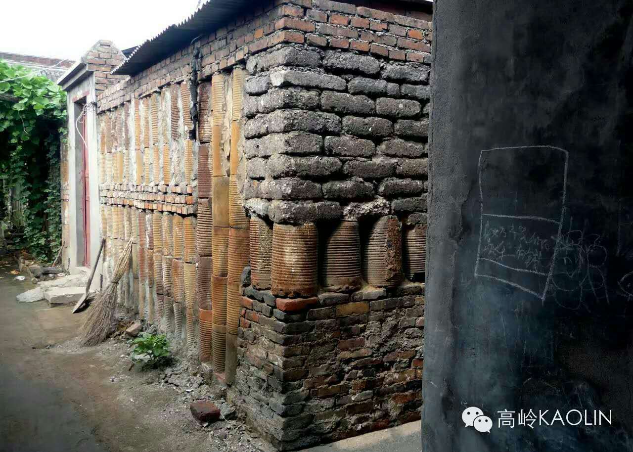 彭城人烧陶瓷用的是馒头窑。这种外形酷似馒头的瓷窑起于战国时代,它结构简单,便于建造,体现着农业时代中国劳动人民的智慧,也是中国古代北方烧瓷的典型代表;笼盔作为烧瓷过程中的窑具,用过之后便不再有什么价值,然而资源匮乏的年代,人们突发灵感,将其砌而为墙,反倒成了景致。