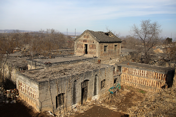 老村建在山沟两侧,因而地势相对低矮。如今,沟里的水早已不复存在,而老村依然依傍着干枯的河道。很多房屋因长年无人居住而受到损坏,呈现出一幅萧条的景象。站在新村视野好的地方望去,老村破败的房屋就像一群落魄的乞丐,蜷缩在一起窃窃私语。