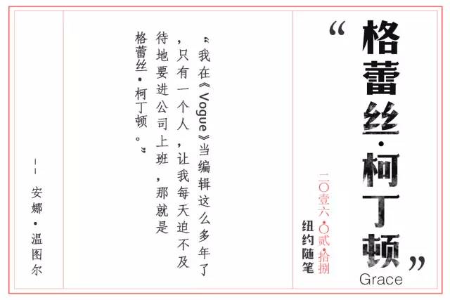 (“我在《Vogue》当编辑这么多年了,只有一个人,让我每天迫不及待地要进公司上班,那就是格蕾丝·柯丁顿。”-《Vogue》杂志主编 Anna Wintour)