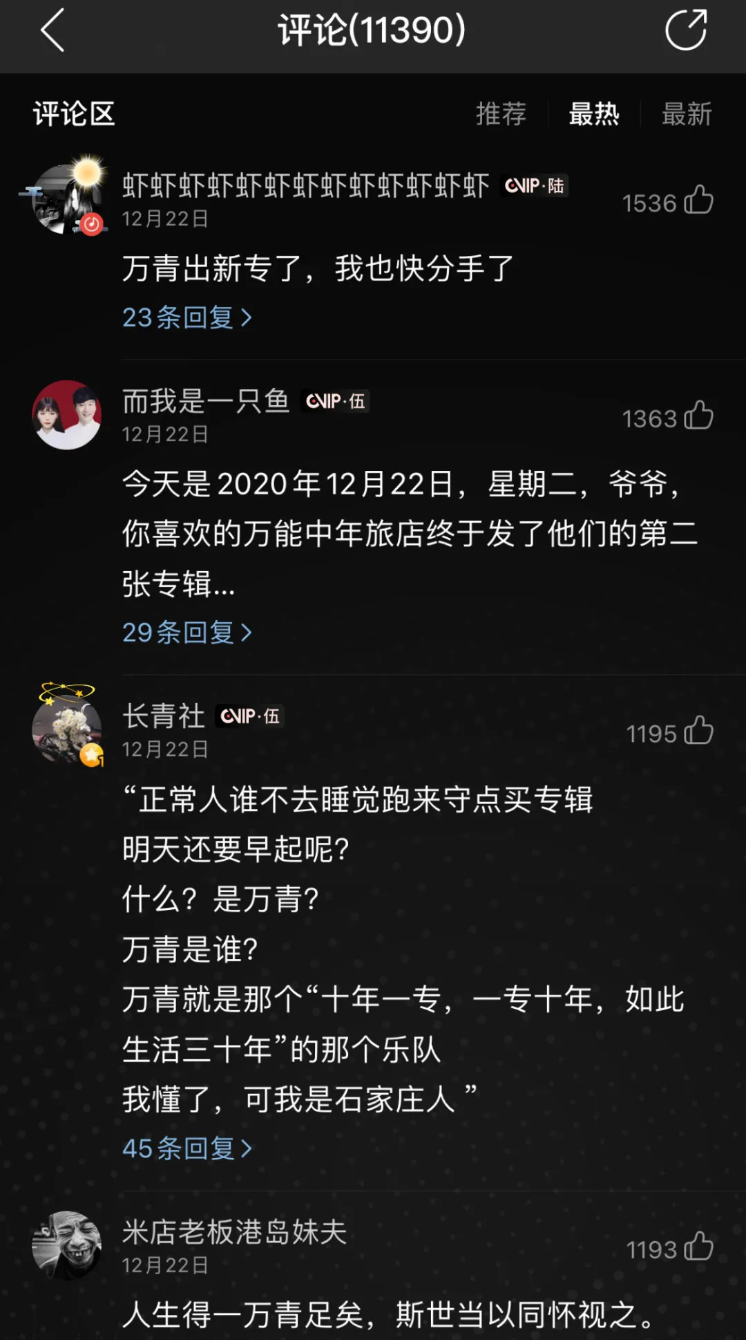 相比于偶像歌手和男团、女团,万青并没有一出手便购买上万张专辑的粉丝团,在网易云音乐累计粉丝榜中,《冀西南林路行》第一名支持数量也仅600张。可以说,《冀西南林路行》35万张的销量,更多还是由一个个等待十年的忠实乐迷支撑起来的。