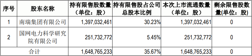 这是三年前国电南瑞向控股股东南瑞集团有限公司(下称南瑞集团)、国网电力科学研究院有限公司(下称国网电科院)定增发行的股份。国网电科院为南瑞集团唯一股东,持有其100%股权。