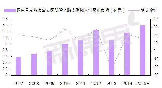 国内统计数据显示,2014年国内重点城市公立医院鼻炎喷雾剂、滴液剂品种中,糠酸莫米松鼻喷雾剂、布地奈德鼻喷雾剂、盐酸氮卓斯汀鼻喷雾剂、氟替卡松鼻喷雾剂和倍氯米松鼻喷雾剂五个品种的销售额为1.38亿元,同比上一年增长了21.23%;占据了鼻炎喷雾剂、滴液剂市场的四分之三。