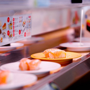 回转寿司在日本是较为大众且价位亲民的餐饮模式,消费者可以在店内转盘上自己拿取需要的寿司,除了一些较为昂贵食材做的寿司,大部分寿司的价格都是100日元(折合人民币6.5元)。