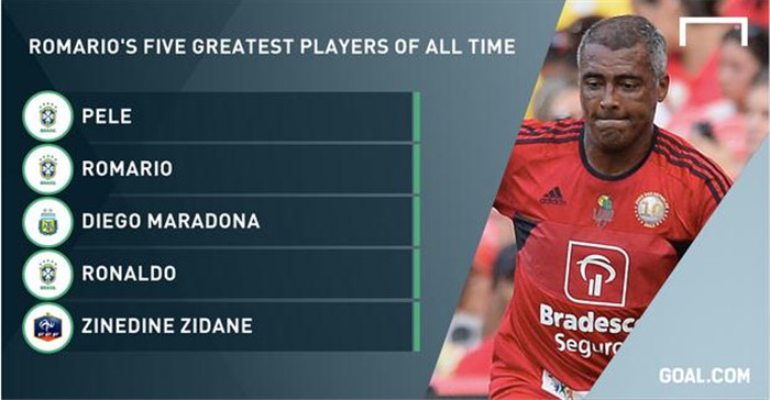 在榜单中,罗马里奥将球王贝利(Pele)奉为世界最佳,他自己第二,第三名则是阿根廷前锋迭戈·马拉多纳(Diego Maradona)。