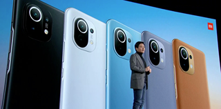 “轻薄化”是小米11的设计重点。新品重196g,厚8.06mm,采用四面微曲设计,共提供五款配色,其中三款为AG磨砂玻璃(黑、白、蓝),两款为素皮材质(烟紫色、卡其色)。