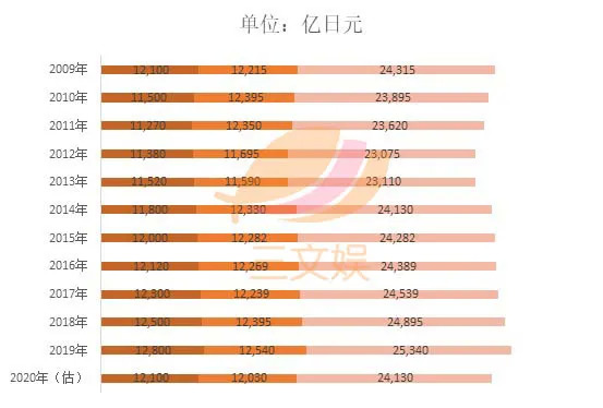 但是,预计2020年这一年,日本的角色市场的规模将同比减少4.8%至1521.88亿元(2兆4130亿日元)。其中,版权收益为763.15亿元(1.21兆日元),同比减少5.47%;商品化收益为758.73亿元(1.203兆日元),同比减少4.07%。