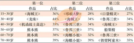 而从性别及年龄划分上来看,15~30岁的男性最喜爱的角色为《海贼王》36%,其次是《哆啦A梦》28%、《口袋精灵》27%。