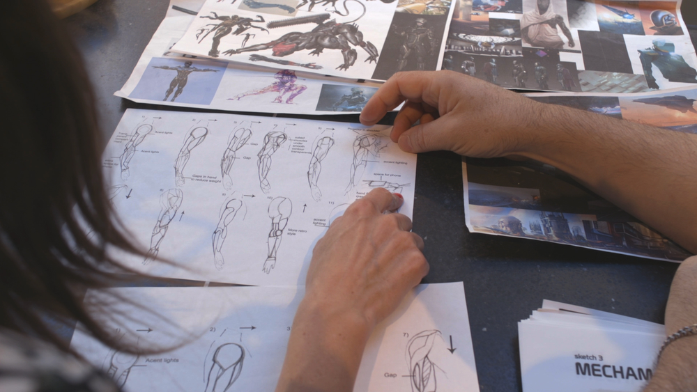 谈话中,James说了自己喜欢的游戏、科幻小说、电影和审美。他拿出自己收集的一些文字和图片,画了一些自己对仿生义肢的构想。就这样,三人的合作开始了。