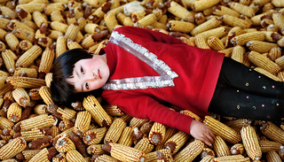 从山海关到嘉峪关,在她的胶片影像中有砍柴回程的路上,肩头插着粉色花,怡然自得的老伯;有躺在金黄色玉米堆上坦然望着镜头的红衣少女;也有开山采石的三三两两的男人们和在小路上依偎在一起晒太阳的一对小羊,还有一群让她颇感神奇的长城守卫员们。这一路,她一边拣拾奇妙的景象,一边修补14岁离乡的相思。