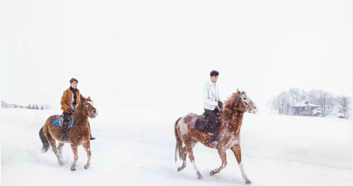 13. 漫天雪白中,只有他和他两抹明亮色彩。