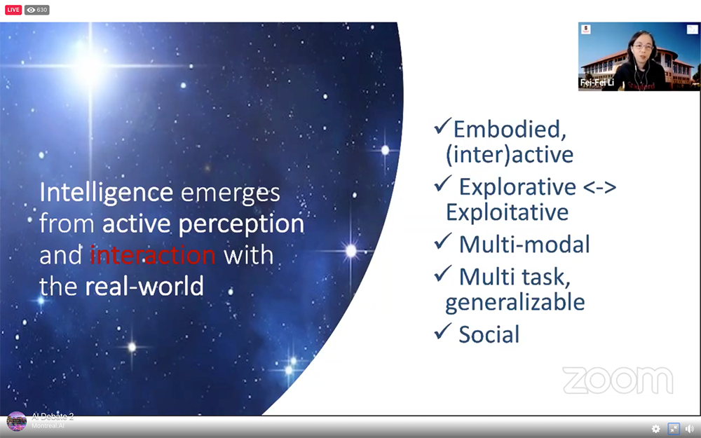 她也提到互动是智力很重要的组成部分,就像婴儿通过与外界的互动认识世界一样,下一代AI也应该具备通过与外界交互发展自身智能的能力,而这一代AI的实体也不仅限于物理机器人,智能体(Agent,可以自主活动的软件或者小型硬件)也可以。
