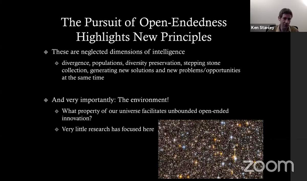 中佛罗里达大学(the University of Central Florida)计算机科学教授Ken Stanley探讨了进化与创造性,计算机能解决很多问题,但人类也能做到很多计算机做不到的事情,那就是开放性的创新。