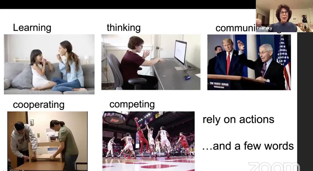 斯坦福大学心理学名誉教授Barbara Tversky认为,所有的生物都必须在空间中运动,运动停止,生命也就终结了。Tversky还谈到了人们如何做手势以及能够影响人类思维变化的运动。